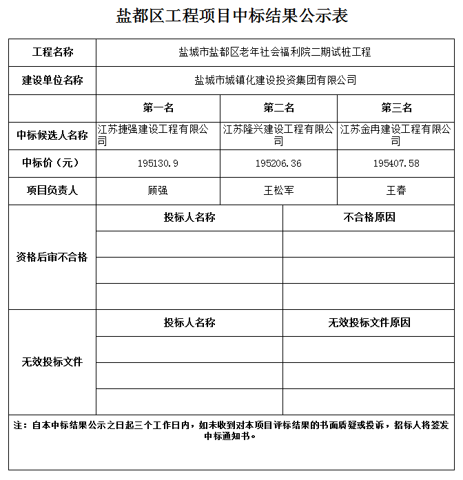 鹽城市鹽都區(qū)老年社會福利院二期試樁工程中標結(jié)果公示