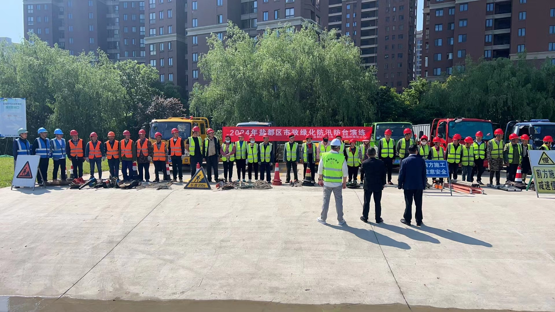 為做好汛前防汛隱患排查整治工作,從源頭上防范化解重大安全風(fēng)險,檢驗防臺抗汛搶險能力,5月9日,區(qū)住建局及鹽都園林綠化公司數(shù)支專業(yè)隊伍在藍(lán)海路合作開展了2024年鹽都區(qū)市政綠化防汛防臺演練活動。