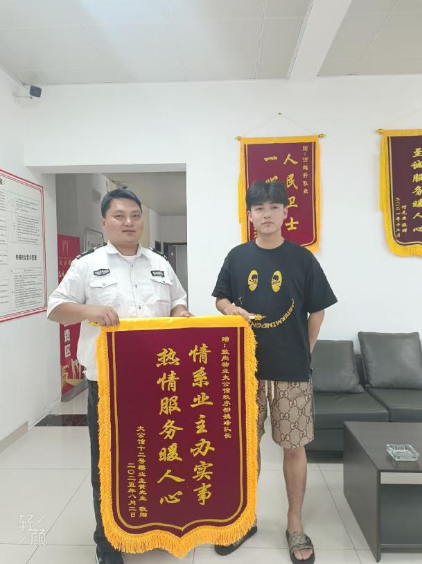 8月,大公館小區(qū)物業(yè)服務中心內(nèi)暖意融融。業(yè)主黃先生送來一面寫著“情系業(yè)主辦實事,熱情服務暖人心”的錦旗,感謝秩序部隊長姚峰幫忙找回丟失財物。業(yè)主金女士也將一面寫著“人民衛(wèi)士,一心為民”的錦旗鄭重地送到保安隊長徐鵬升手中,衷心感謝他通過監(jiān)控追蹤,成功抓獲小偷,為自己追回了被盜財物。安保團隊以實際行動詮釋著“服務業(yè)主”的宗旨,讓業(yè)主們感受到了家一般的溫暖。
