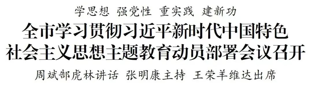 周斌指出,在全黨深入開展學(xué)習(xí)貫徹習(xí)近平新時代中國特色社會主義思想主題教育,是黨中央作出的重大決策,是貫徹落實黨的二十大精神的重大舉措。全市各級黨組織和廣大黨員干部要深入學(xué)習(xí)貫徹習(xí)近平總書記重要講話精神,學(xué)深悟透、對標對表,深刻認識開展主題教育的重大政治意義、理論意義、實踐意義,自覺把高標準高質(zhì)量開展主題教育作為堅定擁護“兩個確立”、堅決做到“兩個維護”的實際行動,作為推進中國式現(xiàn)代化走在前做示范的強大動力,作為強化黨性淬煉、解決大黨獨有難題的重要載體,切實增強看齊追隨的政治自覺、實干爭先的行動自覺、自我革命的時代自覺,把思想和行動統(tǒng)一到中央和省委決策部署上來,以飽滿的政治熱情、強烈的使命擔(dān)當(dāng)、扎實的工作舉措,把主題教育抓出高質(zhì)量好效果。