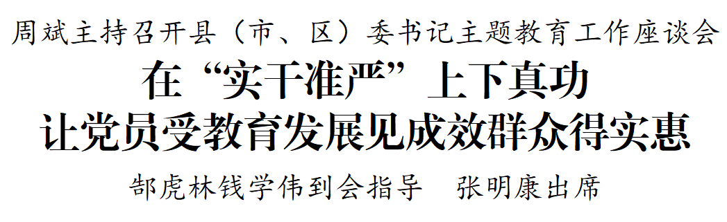周斌認真聽取各縣(市、區(qū))主題教育開展情況和下一步工作計劃,希望大家相互學(xué)習(xí)借鑒,全面自覺對標(biāo)對表,從嚴從實從細推進各項工作,確保主題教育方向不偏、靶心不移、動作不虛。要堅持“實”字當(dāng)頭,在一體推進、增強實效上下真功,在理論學(xué)習(xí)上走深走實,在調(diào)查研究上求真務(wù)實,在檢視整改上真查實改,弘揚傳承“四下基層”優(yōu)良作風(fēng),深入開展“三進三解”大調(diào)研,落實好“三對照三排查”要求,邊學(xué)習(xí)、邊對照、邊整改,確保主題教育取得扎實成效。